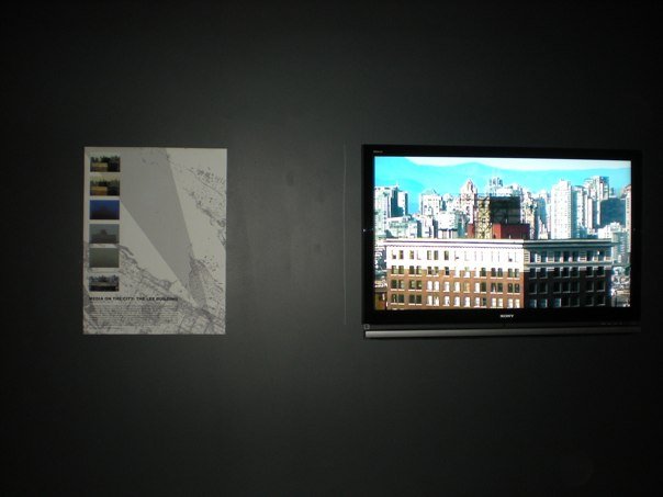 Observing the demolition of the building’s advertising panels, Media on the City – The Lee Building positions the rapid transformation of the city against the recurring everyday experience of the city dweller. A singular view of an instance of urban architecture illustrates the ongoing negotiation of shifting ideologies of the urban in a rapidly developing young North American city. The video documentation takes the presence of the building as a constant; shifting light and weather conditions through changing seasons document and reposition the building in its urban and landscape surroundings. References to foreground, middleground, and background are constantly redefined. At the same time, the video positions the viewer as an active participant in the negotiations of spatial references. Changing weather and lighting dynamically alter the visual field and reconstitute the experience of the urban context.